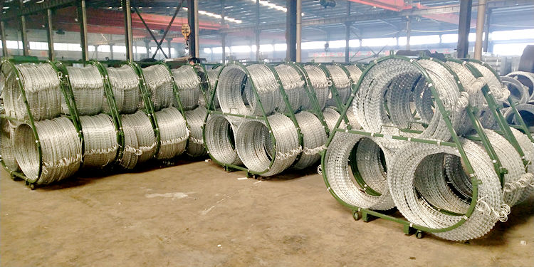 組合形式:品字形;材質(zhì):冷拉碳素鍍鋅彈簧鋼絲(熱鍍鋅)。芯絲公稱(chēng)直徑2.5mm,直徑允許偏差符合GB/T4357-2009《冷壓碳素彈簧鋼絲》要求,由HPB300φ6.5mm高線(xiàn)鋼絲冷拔加工。抗拉強(qiáng)度≥1650MPa,防腐鍍鋅層重量≥275g/㎡。每周卡扣為:7個(gè);連接卡扣為1個(gè);三圈卡扣總數(shù)量為24個(gè)。鋼絲繩直徑4mm,螺旋與刺絲滾籠連接。