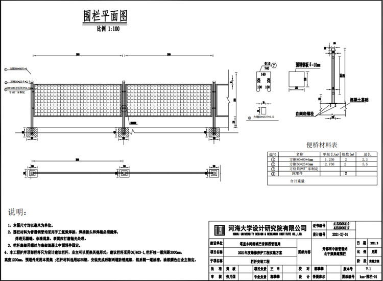 1、本圖渠道圍欄尺寸均以毫米為單位。