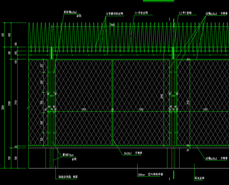 9.刀片刺繩防攀爬圍網(wǎng)其他未詳盡之處詳見15J001圍墻圍欄說明要求。