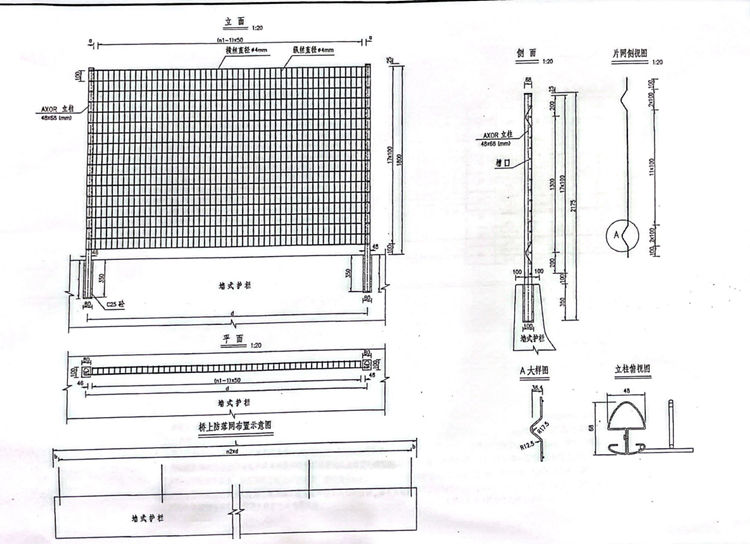 4.橋上防落網(wǎng)的立柱及片網(wǎng)均采用先熱浸鍍鋅再噴塑的雙重防腐處理措施。