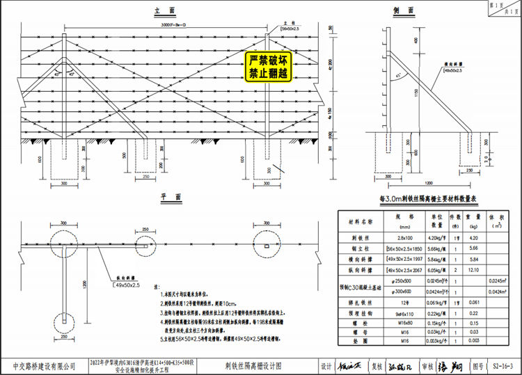 新疆伊犁高速公路刺鐵絲隔離柵設(shè)計(jì)要求: