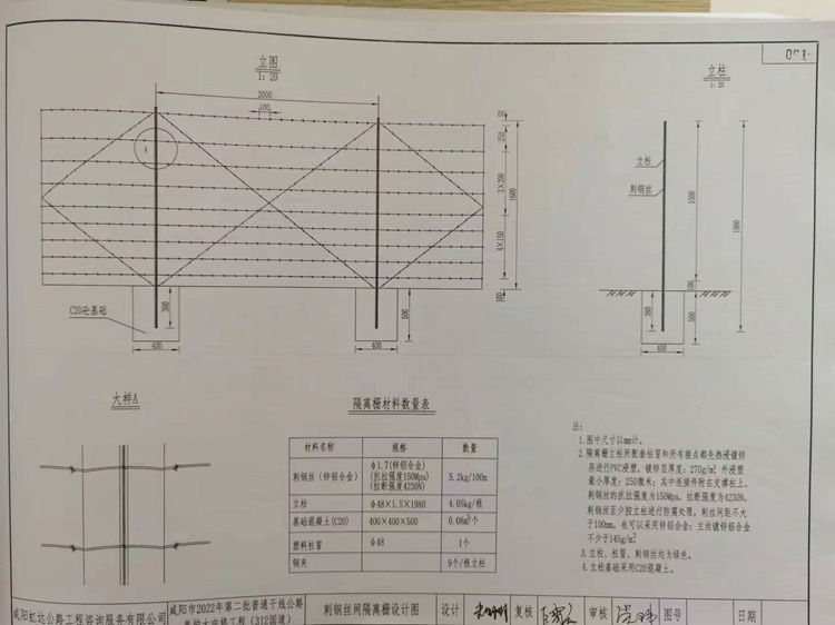 4.普通公路干線刺鋼絲網隔離柵立柱基礎采用C20混凝土。