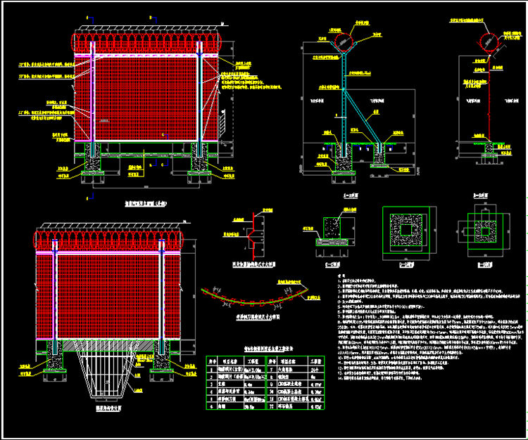 10、圖中立柱頂部應(yīng)加蓋柱帽,立柱與鋼筋網(wǎng)、立柱與斜撐及立柱與延伸臂的連接采用防盜形式并經(jīng)防腐處理。
