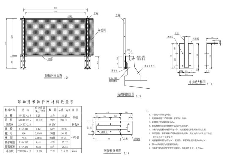 3.防拋網(wǎng)立柱設(shè)置間距為2m。