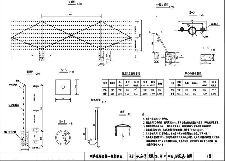1.圖中刺鐵絲隔離柵尺寸均以mm為單位。