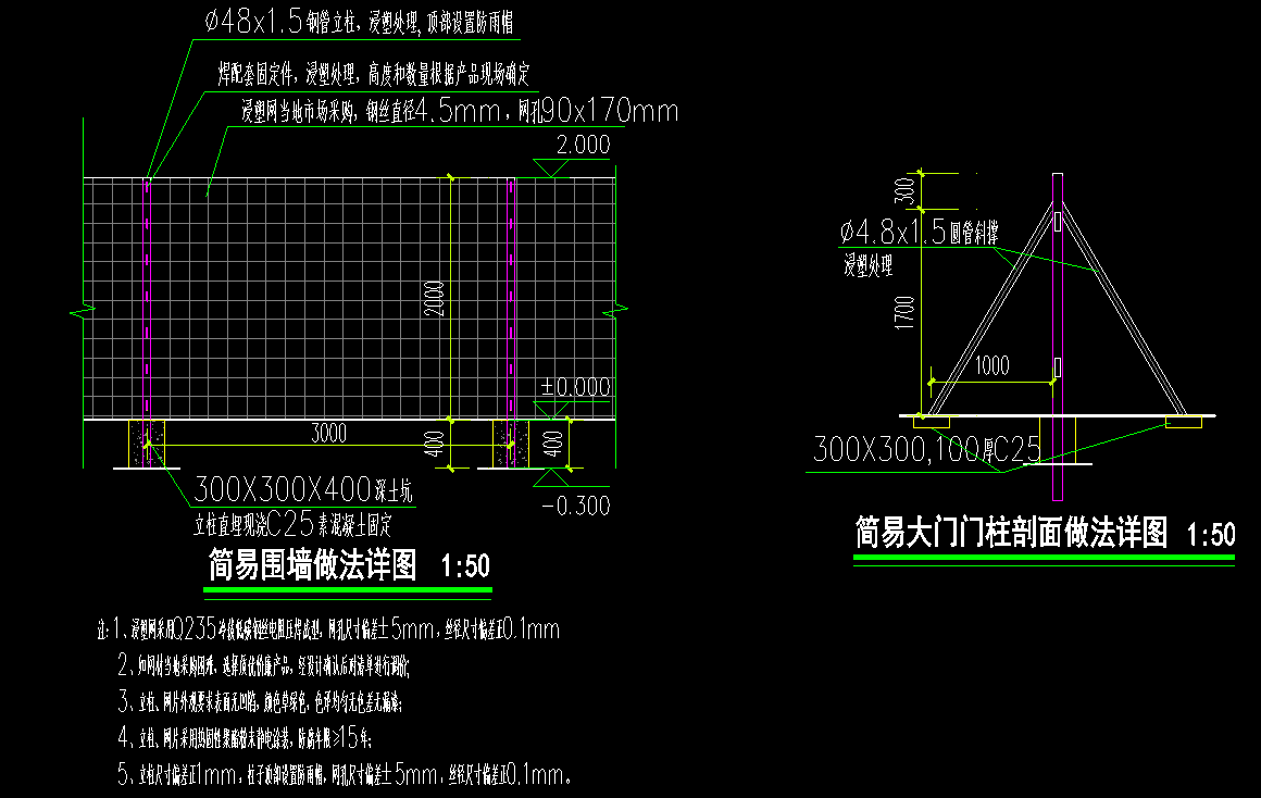 5、浸塑隔離網(wǎng)立柱尺寸偏差正1mm,柱子頂部設(shè)置防雨帽,網(wǎng)孔尺寸偏差±5mm,絲徑尺寸偏差正0.1mm。