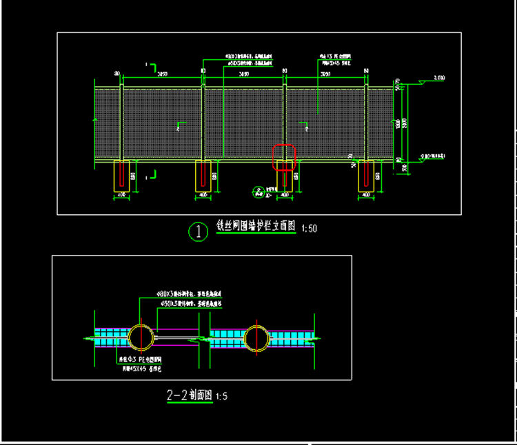 5、鍍鋅噴塑圍網(wǎng)整體安裝高度2.0米,立柱中心距間隔3.13米。