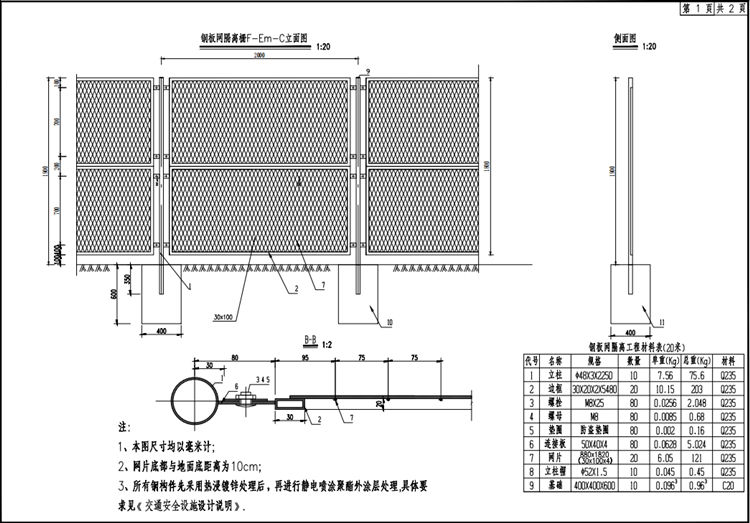 5、鋼板網(wǎng)隔離柵規(guī)定值或允許偏差見《公路公路質(zhì)量檢驗(yàn)評定標(biāo)準(zhǔn)》(JTG F80/1—2017)表11.10.2 的規(guī)定。