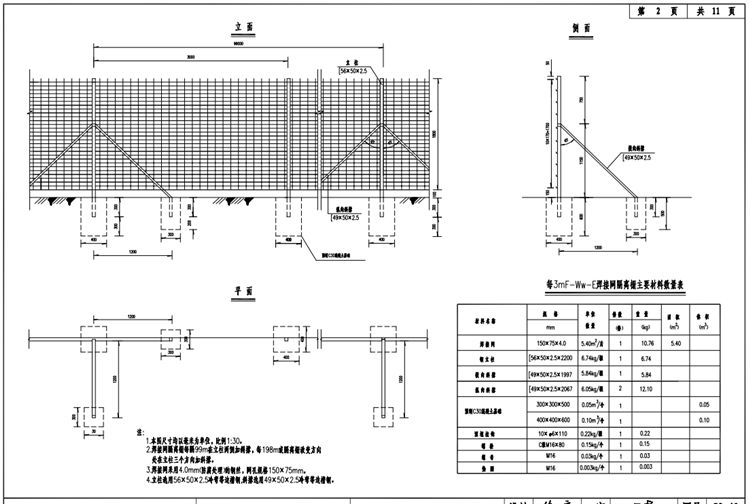 4.護(hù)欄圍欄立柱選用56X50X2.5冷彎等邊槽鋼,斜撐選用49X50X2.5冷彎等邊槽鋼。