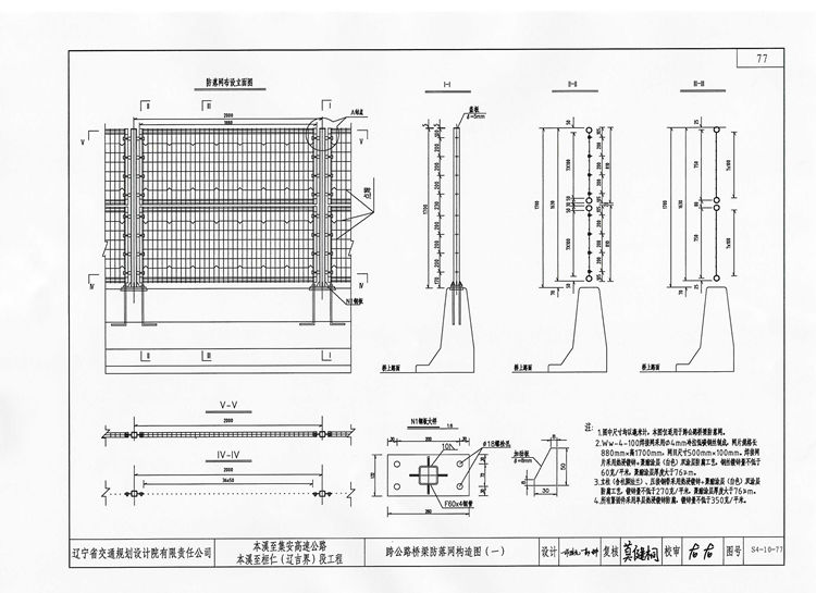 1.圖中尺寸均以亳米計(jì),本圖僅適用跨公路橋梁防落網(wǎng)。