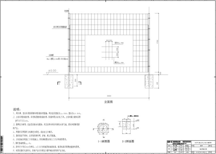 7、鋼絲網(wǎng)圍欄基礎(chǔ)埋深0.4m。