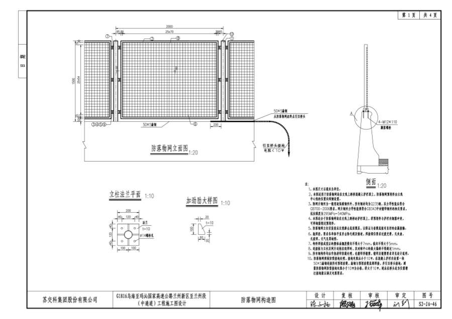 4、本圖適合于防落物網(wǎng)設(shè)在支線上跨橋護(hù)欄頂上,若預(yù)埋件與護(hù)欄內(nèi)鋼筋沖突,可將鋼筋繞過預(yù)埋件。