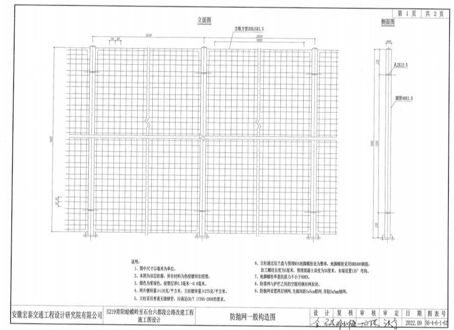 4、防拋網(wǎng)設(shè)置在主跨外側(cè)防撞護(hù)欄上,全橋共計(jì)設(shè)置防拋網(wǎng)280米,合計(jì)140片。