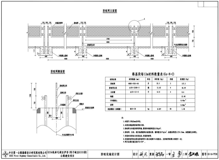 2.本圖為路基段防眩網(wǎng)設(shè)計(jì)圖。