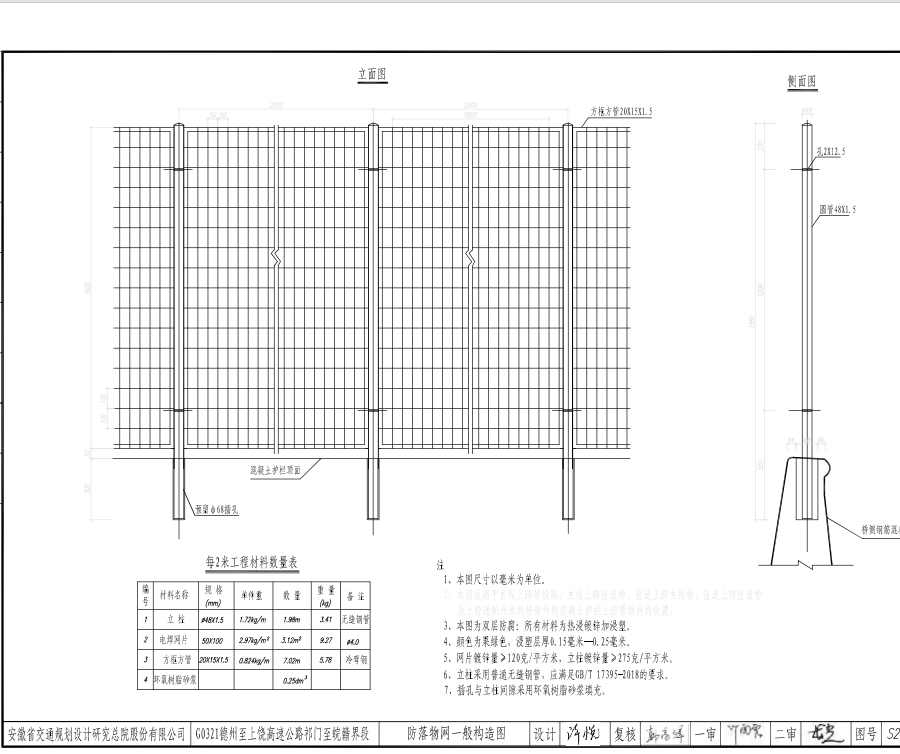 2、本土適用于主線上跨等級(jí)路,主線上跨匝道橋,匝道上跨主線橋,匝道上跨匝道橋及上跨通航河流的橋梁外側(cè)混凝土護(hù)欄上防落物網(wǎng)的設(shè)置。