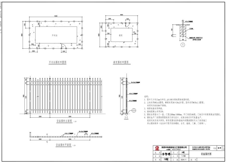 5.圍欄各預(yù)留大門一座,門寬1200mm/1000mm,開門角度180度,門柱及中間框架做法同圍欄