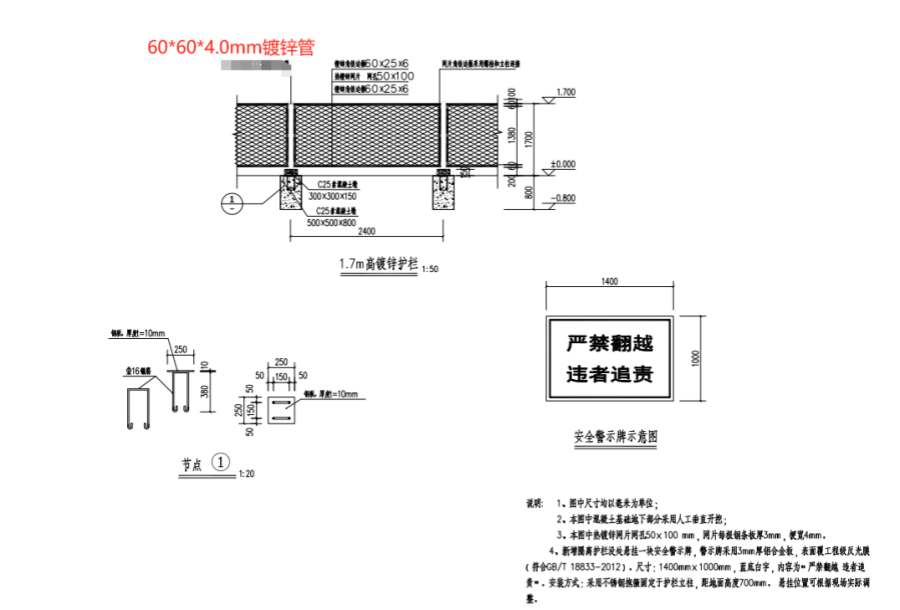 3、本圖中熱鍍鋅網(wǎng)片網(wǎng)孔50x100mm,網(wǎng)片每根鋼條,板厚3mm,梗寬4mm。