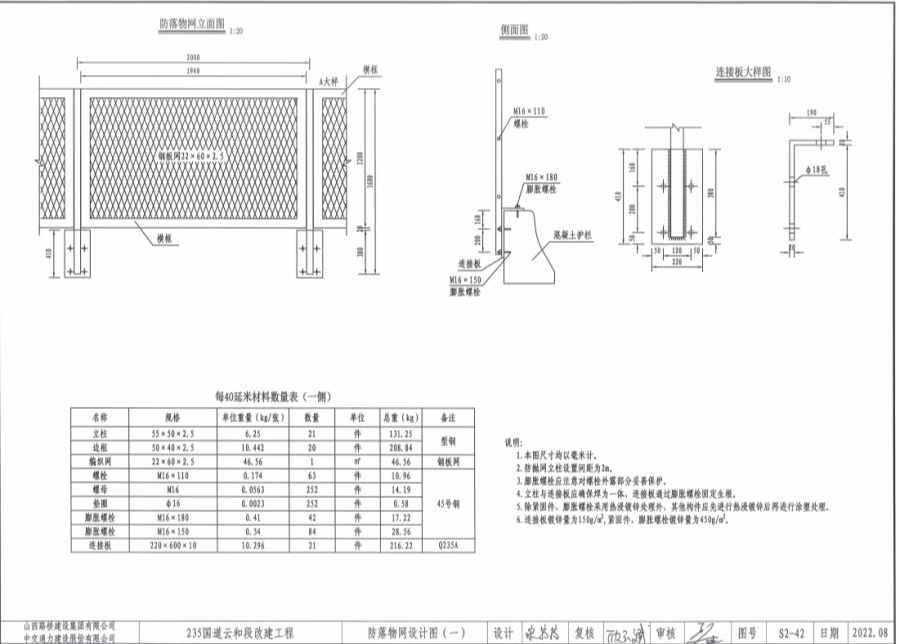 2.防拋網(wǎng)立柱設(shè)置間距為2米。
