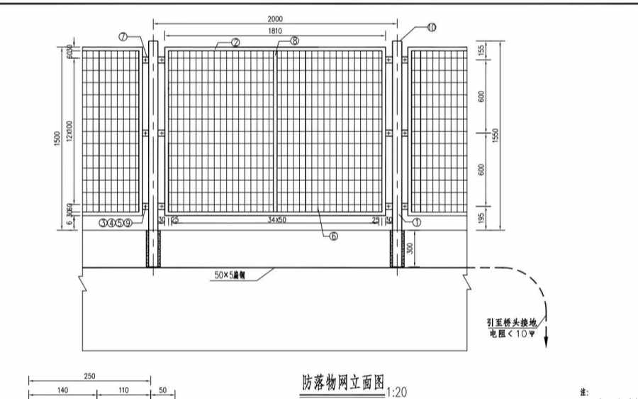 2.本圖適合于防落物網(wǎng)設(shè)在人行天橋或分離式立交橋砼護(hù)欄頂上。