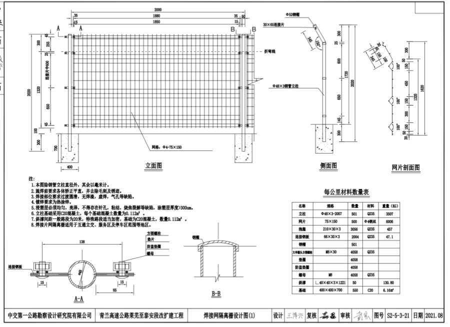 8.焊接片網(wǎng)隔離柵適用于瓦通立交、服務(wù)區(qū)及停車區(qū)范圍等地區(qū)。
