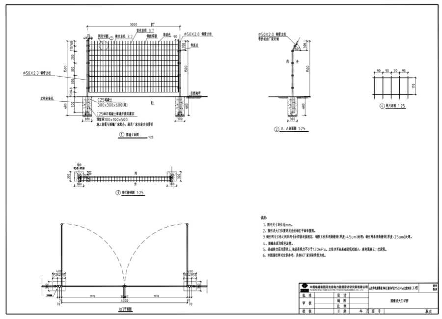2、圍欄及大門位置詳見光伏場(chǎng)區(qū)平面布置圖。